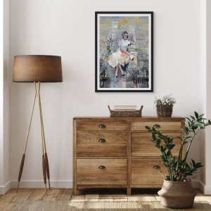 - Cette affiche abstraite représente une femme vêtue d'une robe délicate sur un fond aux textures riches et aux couleurs subtiles. Parfaite pour les amateurs d'art contemporain et de décorations modernes.