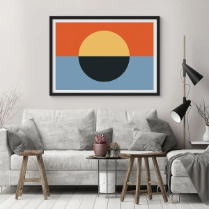 Affiche dans un cadre noir - Poster - Composition géométrique avec un cercle et des couleurs contrastées - 50x70cm - Composition de chaleur et de fraîcheur - Décoration murale moderne pour le salon et la chambre ARTTOR