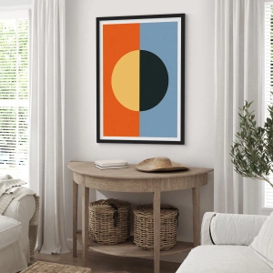 - Une affiche abstraite à la composition géométrique, combinant un cercle et des couleurs contrastées. Parfaite pour les intérieurs modernes et minimalistes.
