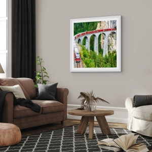 Affiche dans un cadre blanc - Poster - Chemin de fer avec vue sur la montagne - 30x40 cm