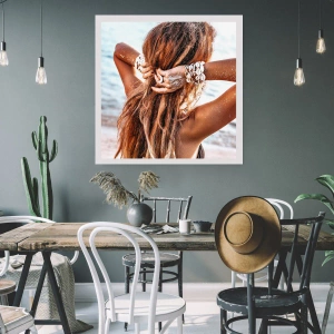 Affiche - Poster - Une femme aux cheveux longs décorée de coquillages au bord de la mer - 50x70cm - La soeur de l'eau et du soleil - Décoration murale moderne pour le salon et la chambre ARTTOR