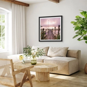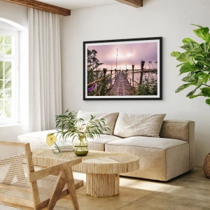 Affiche dans un cadre noir - Poster - Pont en bambou sur une eau calme au crépuscule - 50x70cm - Le silence et le calme d'Asie - Décoration murale moderne pour le salon et la chambre ARTTOR