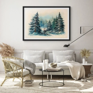 Affiche dans un cadre noir - Poster - Paysage d'hiver avec des arbres enneigés - 70x50cm - Prêt pour les fêtes - Décoration murale moderne pour le salon et la chambre ARTTOR