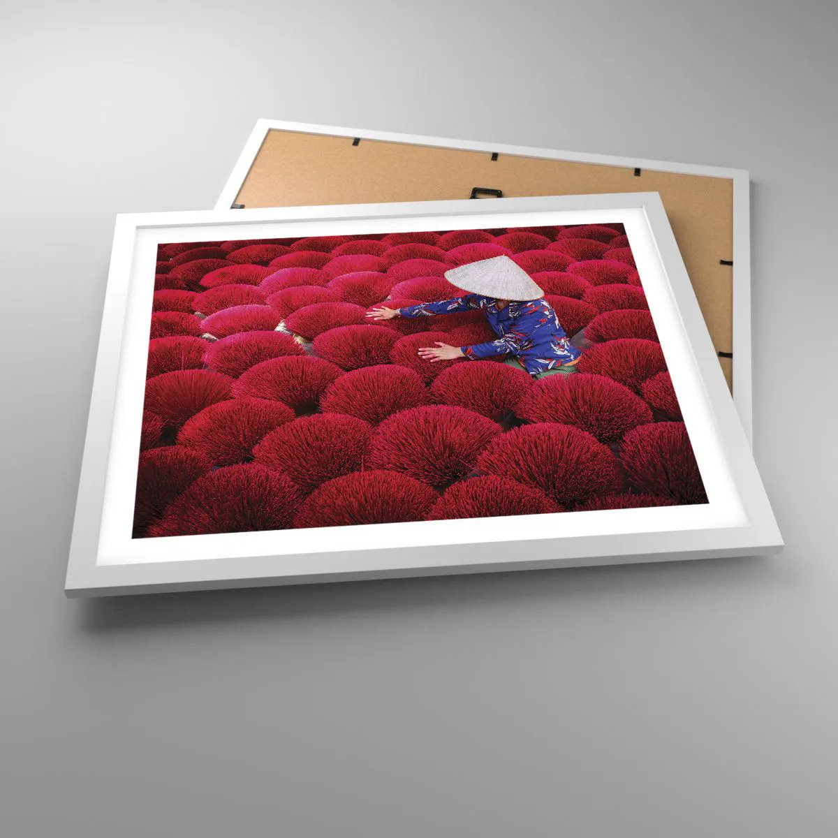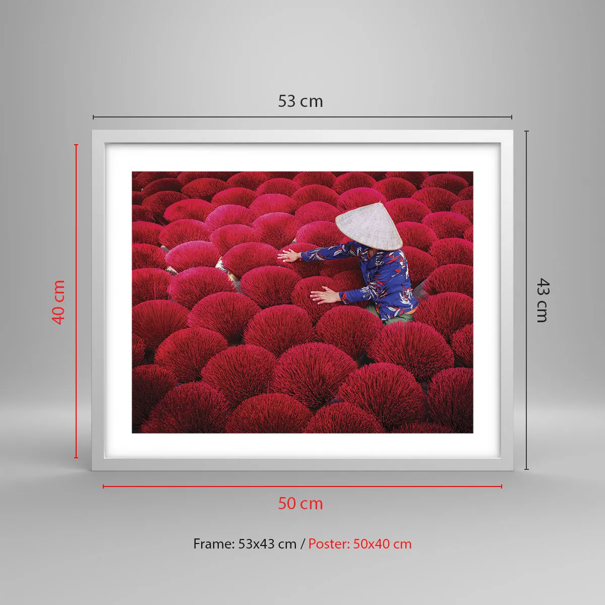 Affiche dans un cadre blanc - Poster - Dans un champ de riz - 50x40 cm
