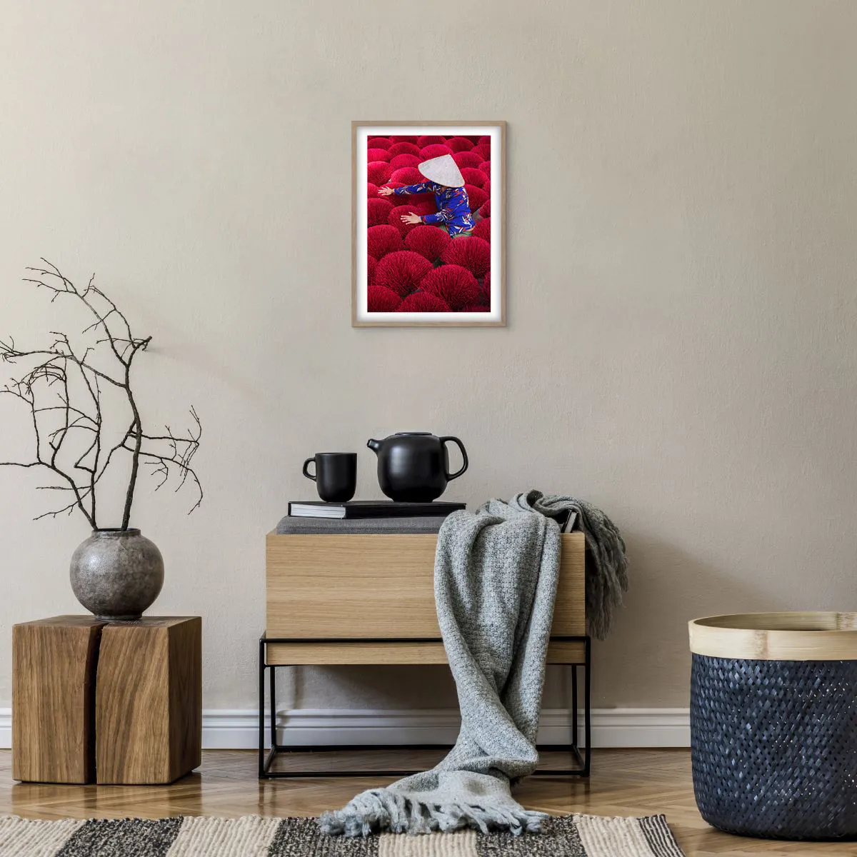 Affiche dans un chêne clair - Poster - Dans un champ de riz - 30x40 cm