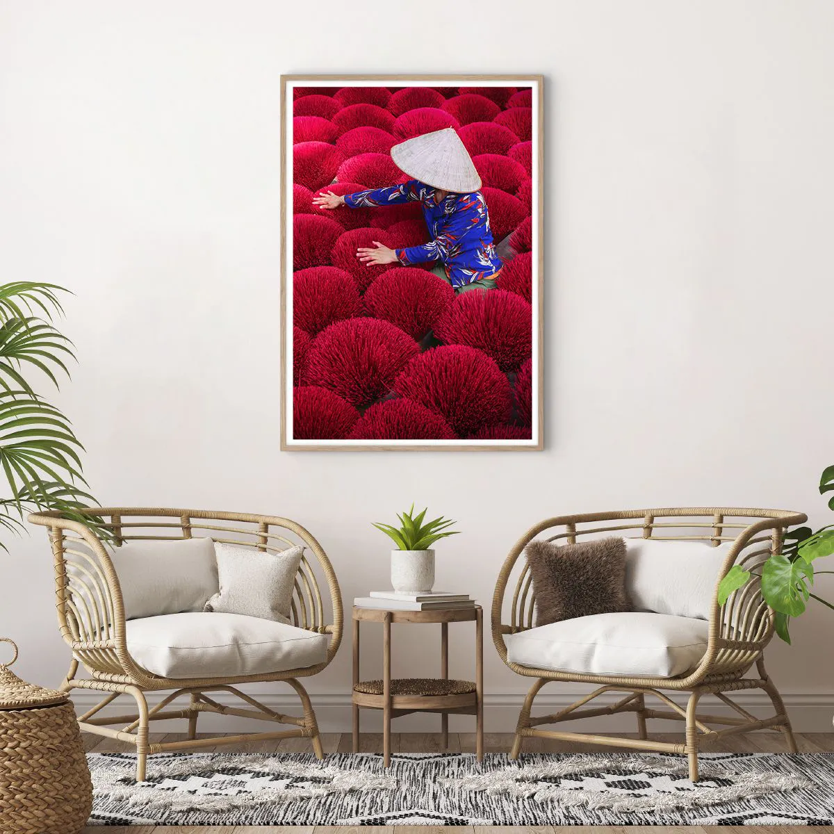 Affiche dans un chêne clair - Poster - Dans un champ de riz - 70x100 cm