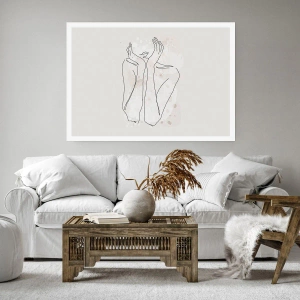Affiche - Poster - Dessin au contour d'une main avec un fond abstrait dans des tons beiges - 50x70cm - Instant de rêve - Décoration murale moderne pour le salon et la chambre ARTTOR