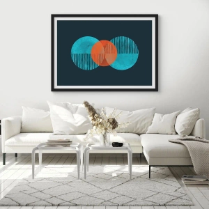 - Cette affiche présente des cercles symétriques aux tons bleu et orange, rehaussés de lignes. Une décoration élégante et moderne, alliant harmonie et style.