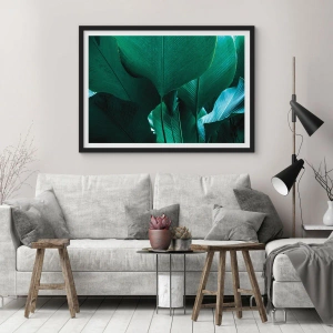 Affiche dans un cadre noir - Poster - Feuilles vertes dans une composition minimaliste - 100x70cm - Tourné vers la lumière - Décoration murale moderne pour le salon et la chambre ARTTOR