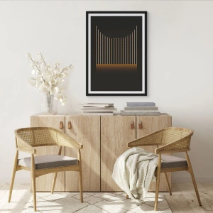 • Cette affiche présente une composition géométrique de lignes verticales sur fond sombre. Son design minimaliste et ses touches dorées apportent élégance et harmonie à tout intérieur. Elle est parfaite pour les espaces modernes où subtilité et raffineme...