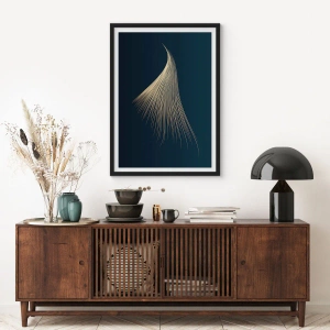 Affiche dans un cadre noir - Poster - Une forme abstraite dorée ressemblant à une mèche de cheveux sur un fond bleu marine. - 50x70cm - Comme les cheveux d'un ange - Décoration murale moderne pour le salon et la chambre ARTTOR