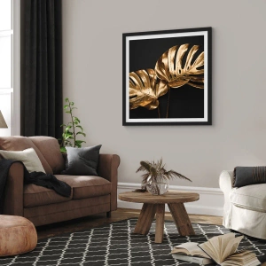 - Cette affiche exclusive représente des feuilles de monstera dorées sur un fond noir profond. Un choix idéal pour les intérieurs élégants qui privilégient le raffinement et le luxe subtil. Idéal comme point focal décoratif.