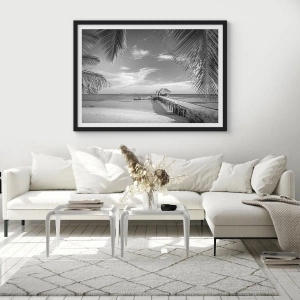 - Cette affiche présente un paysage en noir et blanc représentant une jetée sur une mer calme. Parfaite pour les intérieurs modernes, elle est fournie avec un cadre noir de 50 x 70 cm.