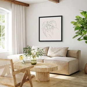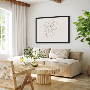 Affiche dans un cadre noir - Poster - Une illustration minimaliste d'un couple dans une étreinte amoureuse - 70x50cm - Enlacé de sentiment - Décoration murale moderne pour le salon et la chambre ARTTOR