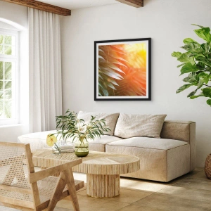 - Cette affiche représente des feuilles de palmier illuminées par la douce lumière du soleil couchant. Le jeu subtil de couleurs et le motif naturel apportent harmonie et sérénité à tout intérieur.
