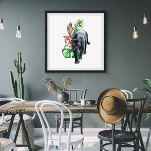 Affiche dans un cadre noir - Poster - Panthère noire entourée de feuilles tropicales - 70x50cm - Sauvagerie du coeur - Décoration murale moderne pour le salon et la chambre ARTTOR