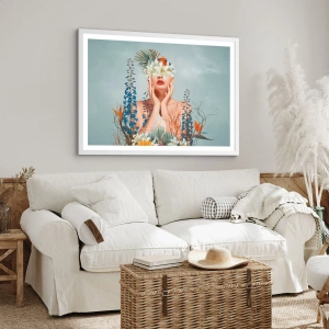 Affiche dans un cadre blanc - Poster - Femme - fleur - 30x40 cm