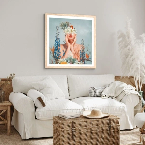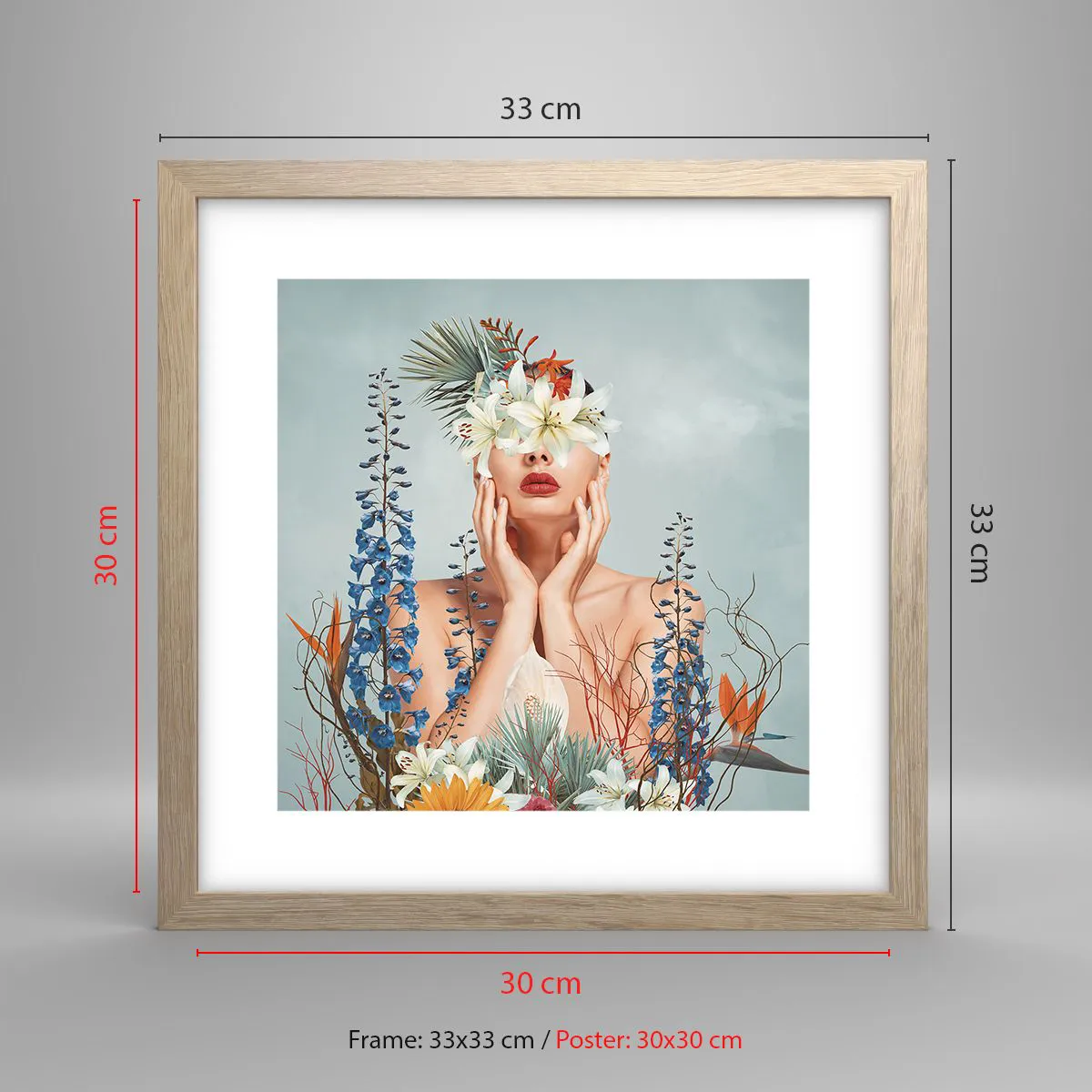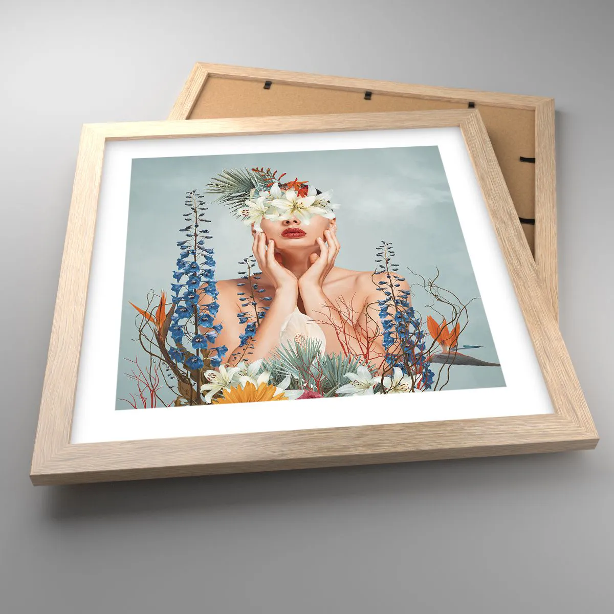 Affiche dans un chêne clair - Poster - Femme - fleur - 30x30 cm