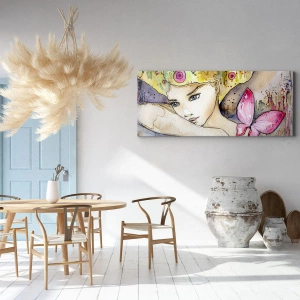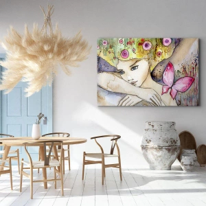 Impression sur toile - Image sur toile - Une femme avec une coiffure abstraite et un papillon rose - 120x80cm - La princesse papillon - Décoration murale moderne pour le salon et la chambre ARTTOR