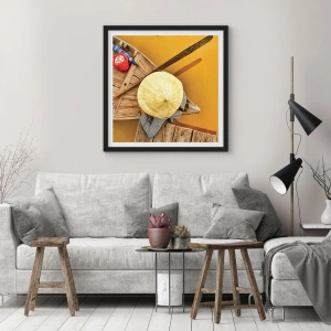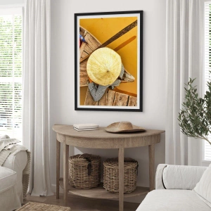 - L'affiche représente un chapeau traditionnel sur fond de bateau en bois et d'eau jaunâtre, créant une composition unique évoquant la tradition asiatique. Parfaite pour un salon, une chambre ou un bureau. Le cadre noir rehausse l'élégance de l'image.