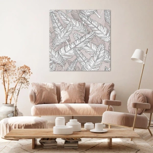 Impression sur toile - Image sur toile - Motif noir et blanc avec des feuilles de bananier sur un fond clair - 120x80cm - Un tourbillon de plumes - Décoration murale moderne pour le salon et la chambre ARTTOR