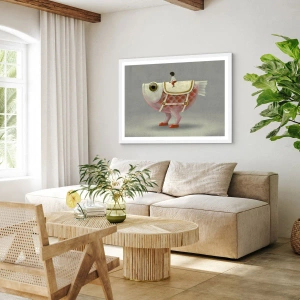 Affiche dans un cadre blanc - Poster - Le cavalier poisson - 40x40 cm