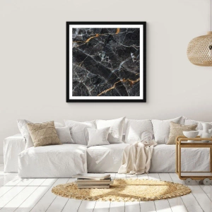 Affiche dans un cadre noir - Poster - Détails noirs et dorés de la surface en marbre - 100x70cm - La vie intérieure de la pierre - Décoration murale moderne pour le salon et la chambre ARTTOR