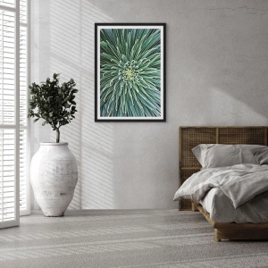 Affiche dans un cadre noir - Poster - Disposition symétrique de feuilles vertes ressemblant à une étoile - 70x50cm - Naissance d'une étoile - Décoration murale moderne pour le salon et la chambre ARTTOR