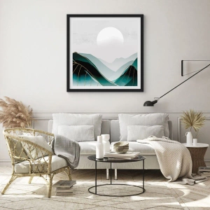 - Cette affiche représente des montagnes abstraites dans des tons verts avec de subtils accents dorés. Un choix idéal pour les intérieurs élégants et modernes.