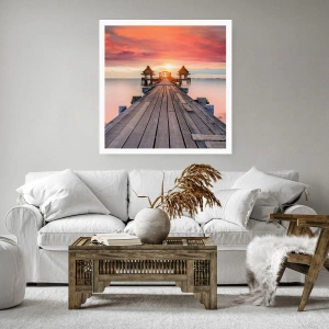Affiche - Poster - Une jetée en bois avec le soleil couchant sur l'eau en arrière-plan - 50x70cm - L'Ouest à l'Est - Décoration murale moderne pour le salon et la chambre ARTTOR