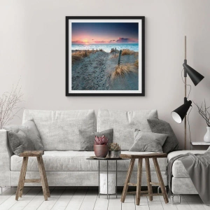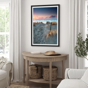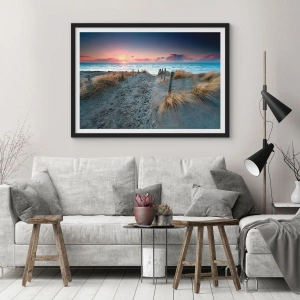 Affiche dans un cadre noir - Poster - Chemin menant à la plage au coucher du soleil - 70x50cm - Tu as versé l'éclat de l'arc-en-ciel sur les flots - Décoration murale moderne pour le salon et la chambre ARTTOR
