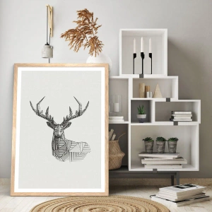 Affiche dans un chêne clair - Poster - Cerf dans un style cubique - 70x50 cm