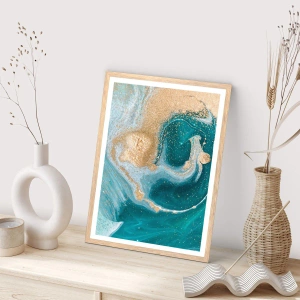 Affiche dans un chêne clair - Poster - Tourbillon d'or et de turquoise - 30x40 cm
