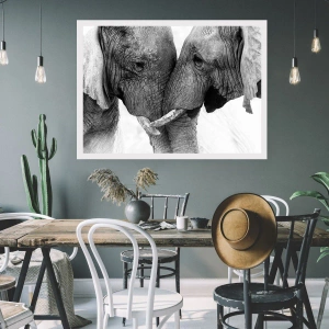 Affiche - Poster - Deux éléphants dans un geste tendre sur un fond monochrome - 100x70cm - Confession sincère - Décoration murale moderne pour le salon et la chambre ARTTOR