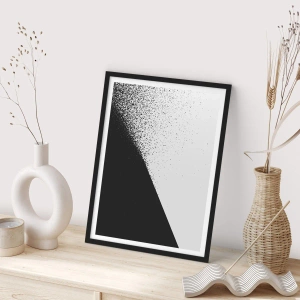 • Cette affiche présente un motif abstrait en noir et blanc, au style minimaliste et moderne. Livrée avec un cadre noir, elle est prête à être accrochée. Elle mesure 50 x 70 cm.