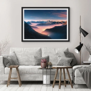 Affiche dans un cadre noir - Poster - Lumière dans les vallées - 50x50 cm