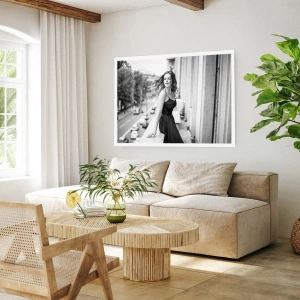 Affiche - Poster - Photographie en noir et blanc d'une femme sur un balcon - 50x70cm - Certainement un Parisien - Décoration murale moderne pour le salon et la chambre ARTTOR