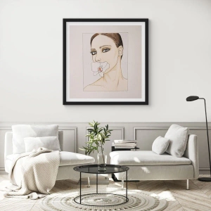 Affiche dans un cadre noir - Poster - Portrait d'une femme avec une orchidée sur les lèvres - 50x70cm - Symbole de l'élégance et de la beauté - Décoration murale moderne pour le salon et la chambre ARTTOR