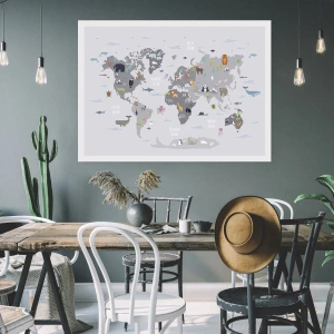 Affiche - Poster - Carte du monde avec des animaux colorés pour les enfants - 50x70cm - Dis-moi d'où tu viens... - Décoration murale moderne pour le salon et la chambre ARTTOR
