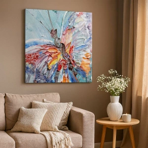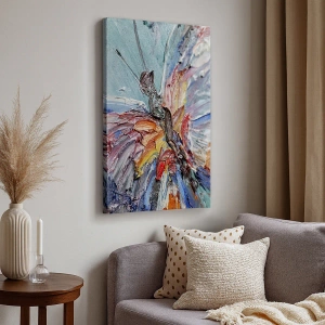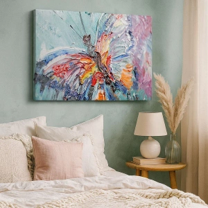 Impression sur toile - Image sur toile - Papillon coloré en pâte sur fond pastel - 140x50cm - Peint par nature - Décoration murale moderne pour le salon et la chambre ARTTOR