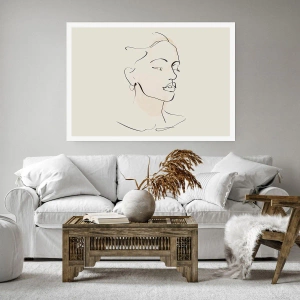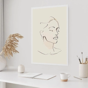 Affiche - Poster - Un croquis délicat du visage d'une femme sur un fond clair - 100x70cm - Une ligne certaine - Décoration murale moderne pour le salon et la chambre ARTTOR