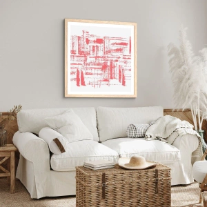Affiche dans un chêne clair - Poster - La ville rouge - 50x50 cm