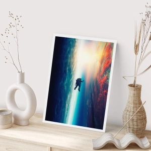 Affiche - Poster - Un astronaute flottant dans l'espace au-dessus d'une Terre colorée - 100x70cm - Affronter l'univers - Décoration murale moderne pour le salon et la chambre ARTTOR