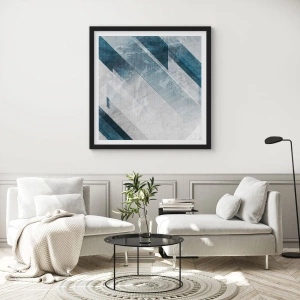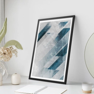 Affiche dans un cadre noir - Poster - Lignes abstraites dans des tons de gris et de bleu - 70x50cm - Composition spatiale - mouvement gris - Décoration murale moderne pour le salon et la chambre ARTTOR