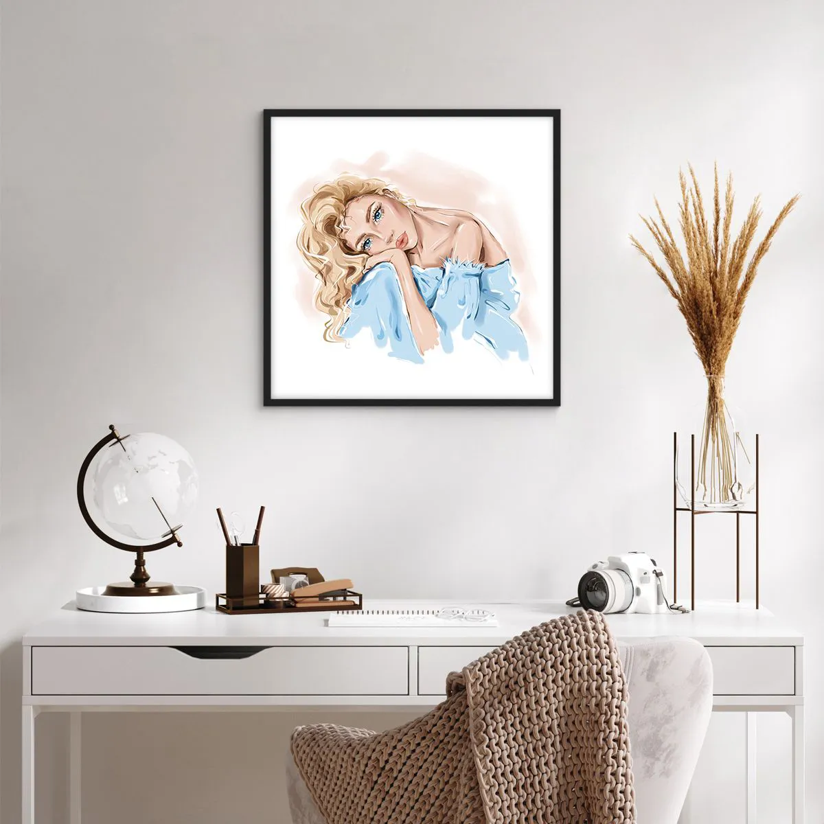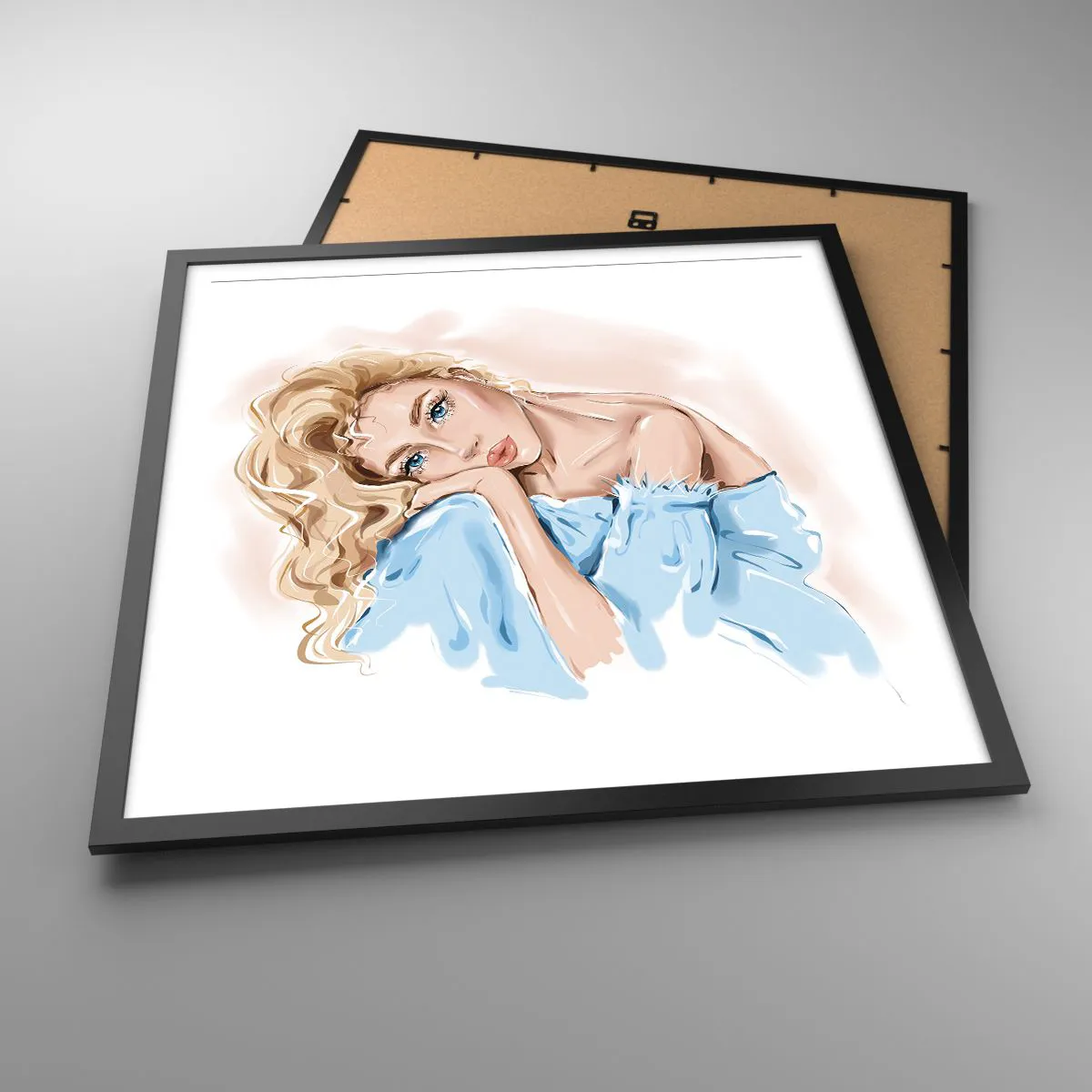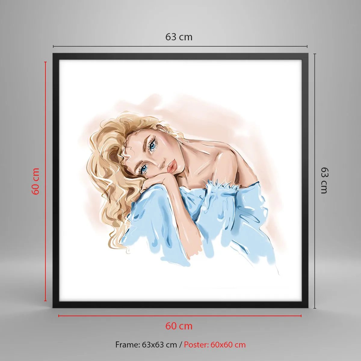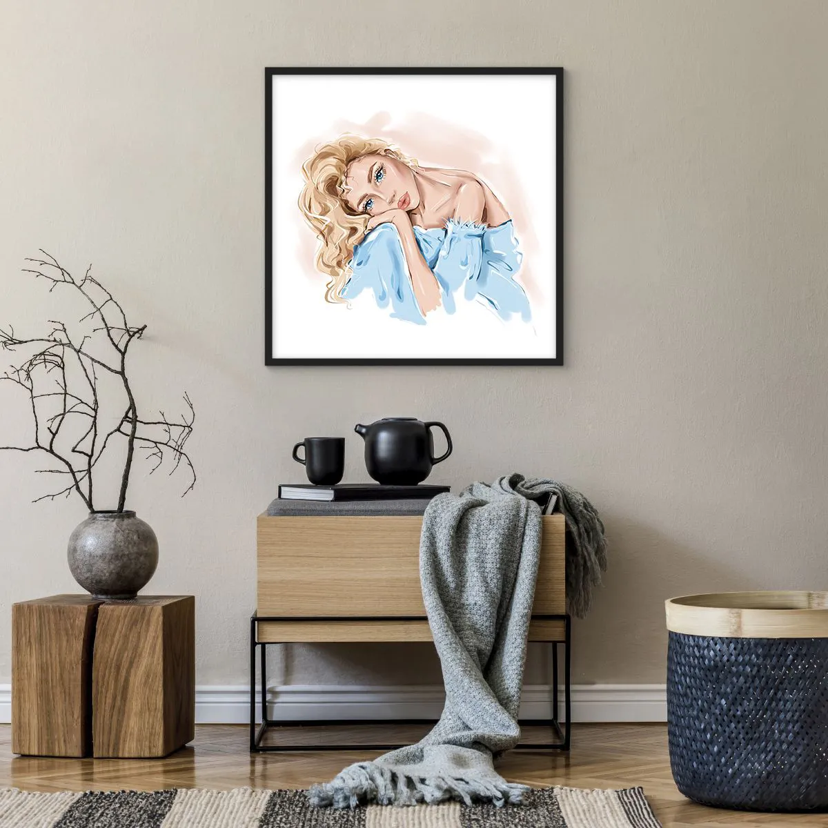Affiche dans un cadre noir - Poster - Rêveuse en bleu - 60x60 cm