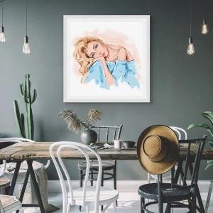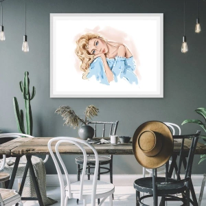 Affiche dans un cadre blanc - Poster - Rêveuse en bleu - 50x40 cm