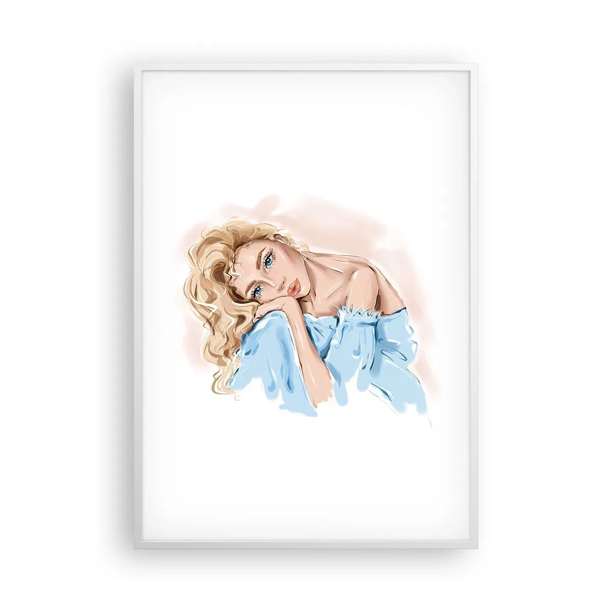 Affiche dans un cadre blanc - Poster - Rêveuse en bleu - 70x100 cm