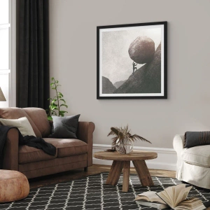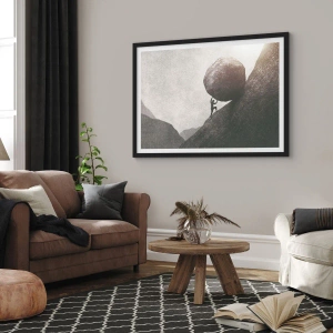 Affiche dans un cadre noir - Poster - Une figure symbolique portant un rocher sur une colline - 50x70cm - Je crois contre tout espoir - Décoration murale moderne pour le salon et la chambre ARTTOR