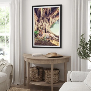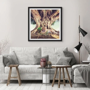 Affiche dans un cadre noir - Poster - Un tigre se reposant sous un arbre étendu - 100x70cm - Vue du Livre de la Genèse - Décoration murale moderne pour le salon et la chambre ARTTOR