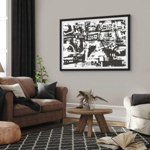 Affiche dans un cadre noir - Poster - Graphique abstrait en noir et blanc avec des formes géométriques - 50x70cm - Ordre ou chaos? - Décoration murale moderne pour le salon et la chambre ARTTOR